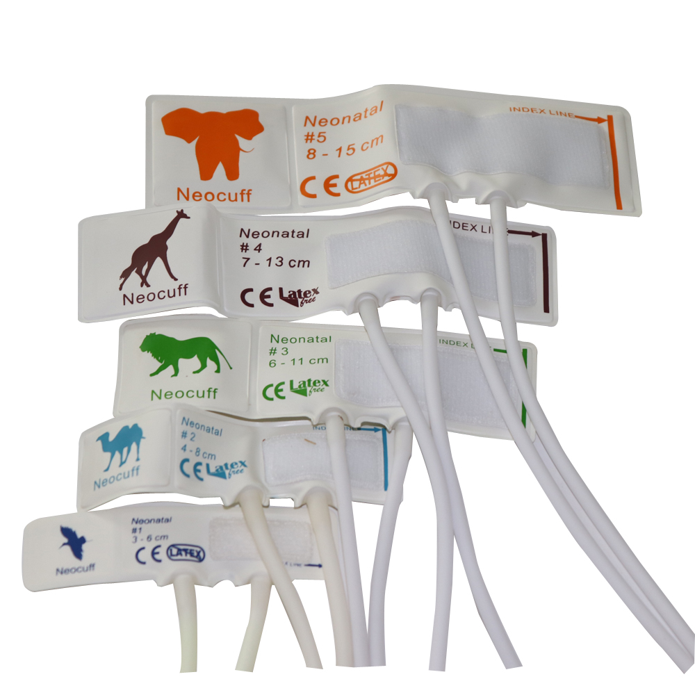 নিয়নেটের জন্য নিষ্পত্তিযোগ্য রক্তচাপের কাফ, নিবিপ কাফ টিপিইউ উপাদান দ্বৈত নলের আকার 1-5,5 পিস / ব্যাগ.বিযুক্ত সংযোগকারী