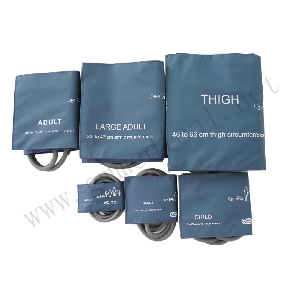 CF004TF-B: উরু নরম দ্বৈত টিউব NIBP কাফ, 46-66 সেমি আর্ম সার্কিফারেন্স, নীল