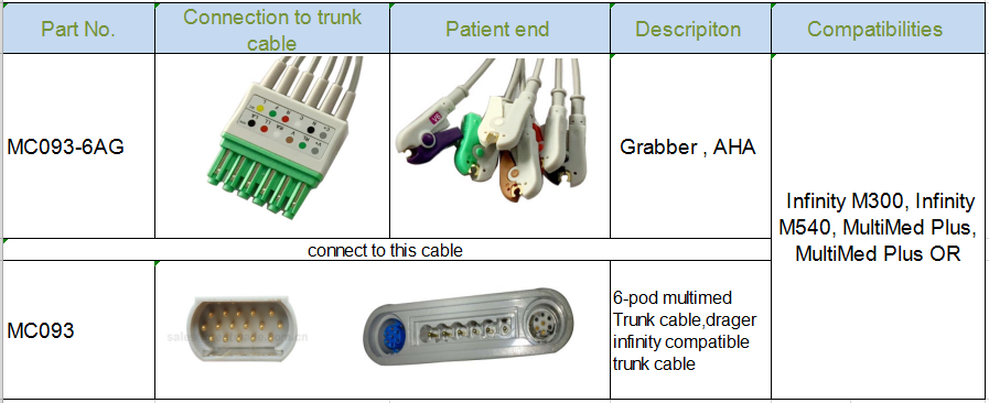 ড্রয়ার ইনফিনিটি M300 ইসিজি লেডওয়ায়ারের সাথে সামঞ্জস্যপূর্ণ - MS16547 6-পড ইসিজি লেডওয়ায়ার সেট