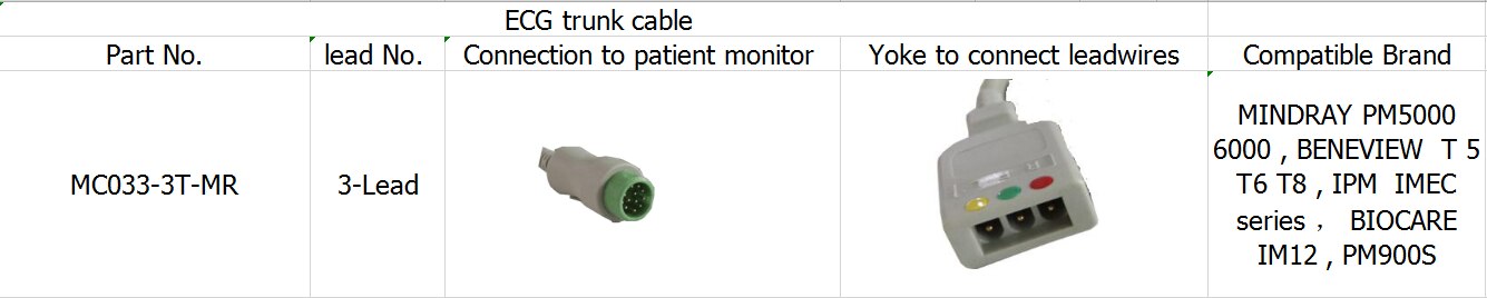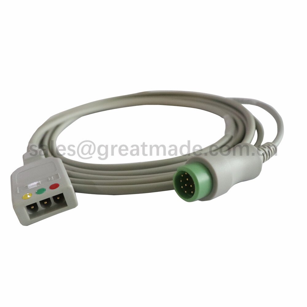 বেনিভিউ টি 5 টি 6 টি 8, বায়োকার আইএম 12, পিএম 900 এস এর জন্য ইসিজি কেবল 3-সীসা ট্রাঙ্ক কেবল