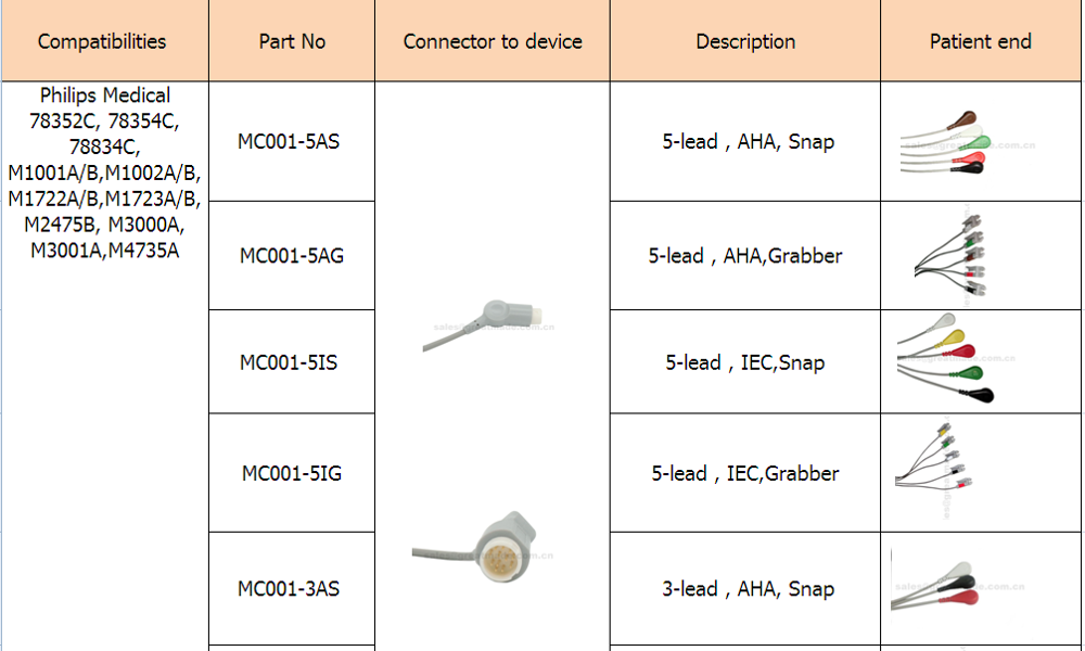 ব্যবহারের জন্য ইঙ্গিতগুলি: রোগী কেবল এবং সীসা তারগুলি ডায়াগনস্টিক এবং পর্যবেক্ষণ উভয় উদ্দেশ্যেই কার্ডিয়াক সিগন্যালের পর্যবেক্ষণে ব্যবহারের জন্য নির্দেশিত হয়। সংযুক্ত তদারকি বা ডায়াগনস্টিক সরঞ্জামগুলির ব্যবহারের জন্য ইঙ্গিত দ্বারা সীমিত se