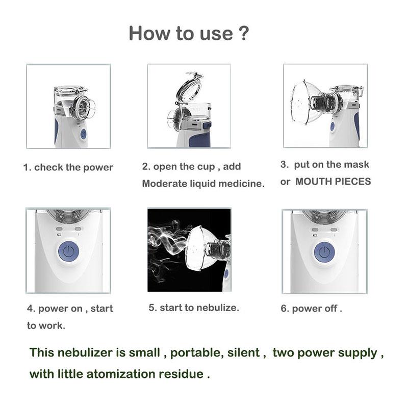 2) সর্দি, ফ্লু, ব্রঙ্কাইটিস এবং অন্যান্য শ্বাসজনিত অসুস্থতার জন্য অ্যাটমাইজিং থেরাপি সরবরাহ করতে সহায়তা করে।